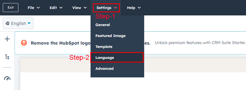 To switch between different language variations, simply click on the “Language” dropdown menu located in the top-left corner and select “English.”